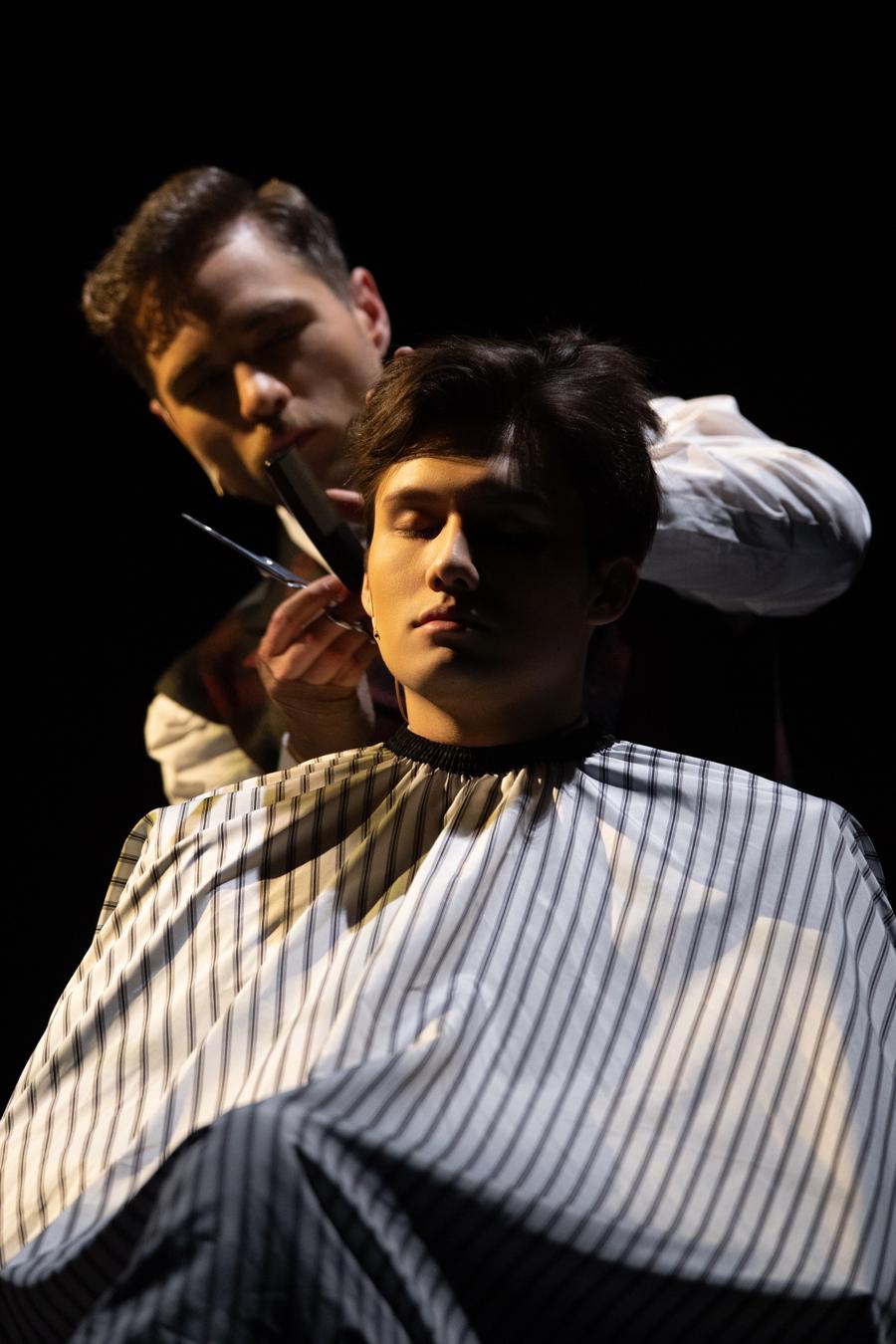 劇中肢體與舞蹈元素的大量運用給觀衆留下深刻印象。開場段落中,阿葦向周鼎講述自己在公寓遭遇的“怪事”,其餘演員以地面爲起點,用充滿對抗感的肢體動作,具象化地演繹出戰爭對肉體的摧殘與精神的折磨。在角色塑造層面,肢體語言成爲外化人物特質的重要抓手,臺詞寥寥的角色,更是憑藉瞬間定格的肢體造型與細節,快速立住身份、凸顯特質。