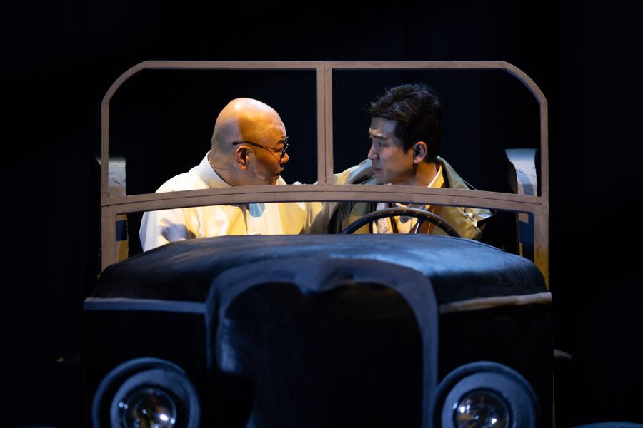 劇中的懸疑線索雙線並行,構築起獨特的敘事張力:一條是女孩阿葦擁有預知住客生死的能力,觀衆跟隨她的預言目睹死亡接連發生,魔幻色彩的舞臺設置與劇情深度交融;另一條是周鼎尋找神祕皮箱的歷程,這條線索不僅靠臺詞推進,更藉由肢體動作完成皮箱的快速傳遞與流轉,往往在觀衆即將看清真相時戛然收束,以動靜交替的節奏強化懸念。簡潔且富有層次的舞臺物理空間,與精心設計的肢體語言體系相輔相成,實現了“聽覺形象”與“視覺形象”的呼應與昇華。