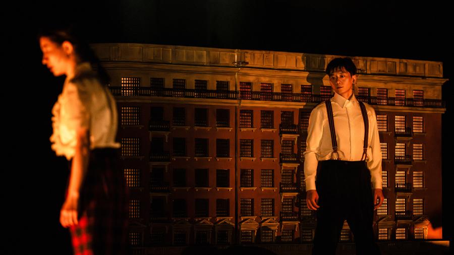 如何將諾曼底公寓這座狀如“一艘劈波斬浪的大輪船”的建築展現在舞臺上,也是舞臺劇的一大看點。舞美設計胡豔君呼應了故事的碎片化敘事,以大大小小的諾曼底公寓模型來輔助敘事,大樓以不同比例出現,時而與人等高,時而顯得渺小,時而可以拆分,時而能在舞臺上移動,這種處理既象徵人與建築、與歷史的關係,也是對建築的一種擬人化與藝術化表達。
