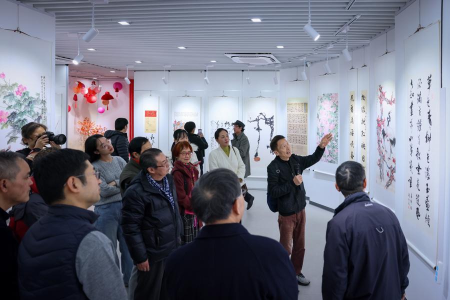 12月22日下午,“揚鞭追夢 策馬丹青”2026虹口區迎春書畫精品展在虹口區文化館四樓展廳拉開帷幕。活動由虹口區文化和旅遊局、虹口區文學藝術界聯合會指導,虹口區文化館、虹口區美術家協會、虹口區書法家協會及上海中國畫花鳥畫藝術沙龍聯合承辦。
