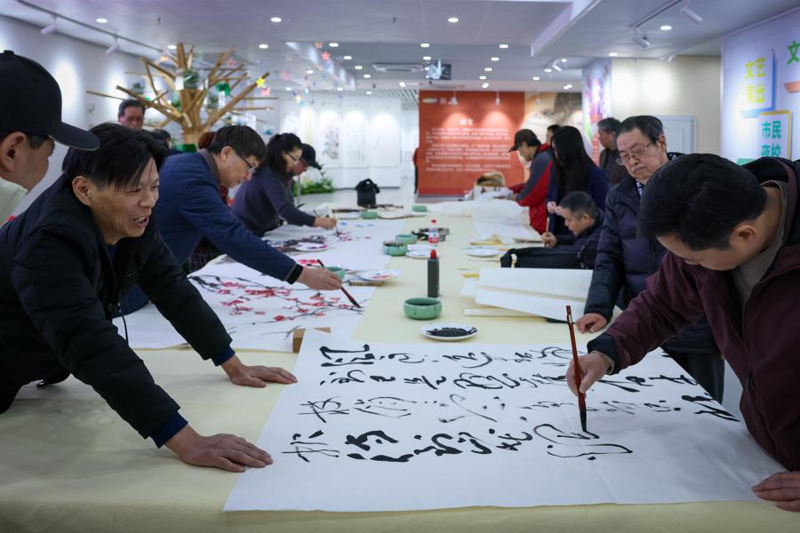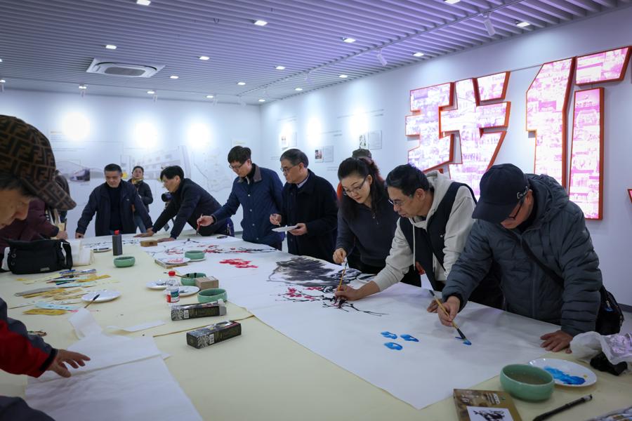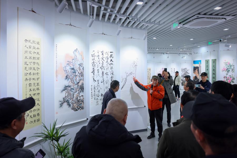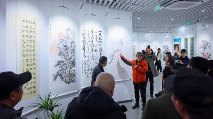 開幕式當天一場別開生面的書畫筆會同步舉行。展廳內,翰墨飄香,書畫家們齊聚一堂,以書畫爲媒介,搭建起一座藝術交流的橋樑。他們現場揮毫潑墨,或書寫豪邁詩詞,或繪製山水花鳥,相互切磋技藝、交流心得,讓現場來賓得以近距離領略傳統文化的獨特魅力。