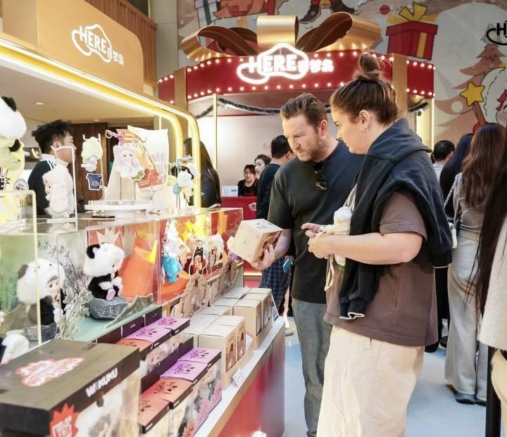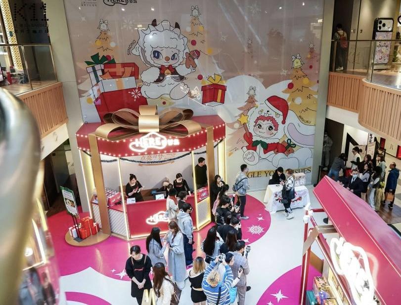 線上熱度持續攀升的同時,HERE奇夢島與上海K11購物藝術中心攜手推出的跨年季限時快閃店,也成爲新品流量落地的重要承接點。快閃店圍繞WAKUKU、SiiNONO等IP打造出濃厚的節日氛圍與打卡場景,通過具象化的設計細節與情緒互動,爲城市年輕人構建一個治癒型年末儀式空間。