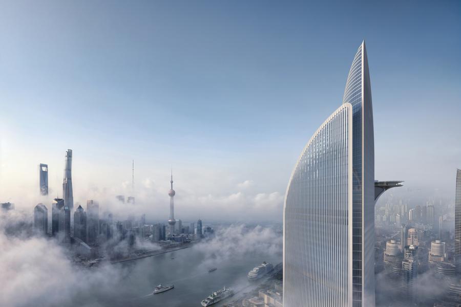 未來“浦西第一高樓”虹口北外灘91街坊項目塔冠效果圖。