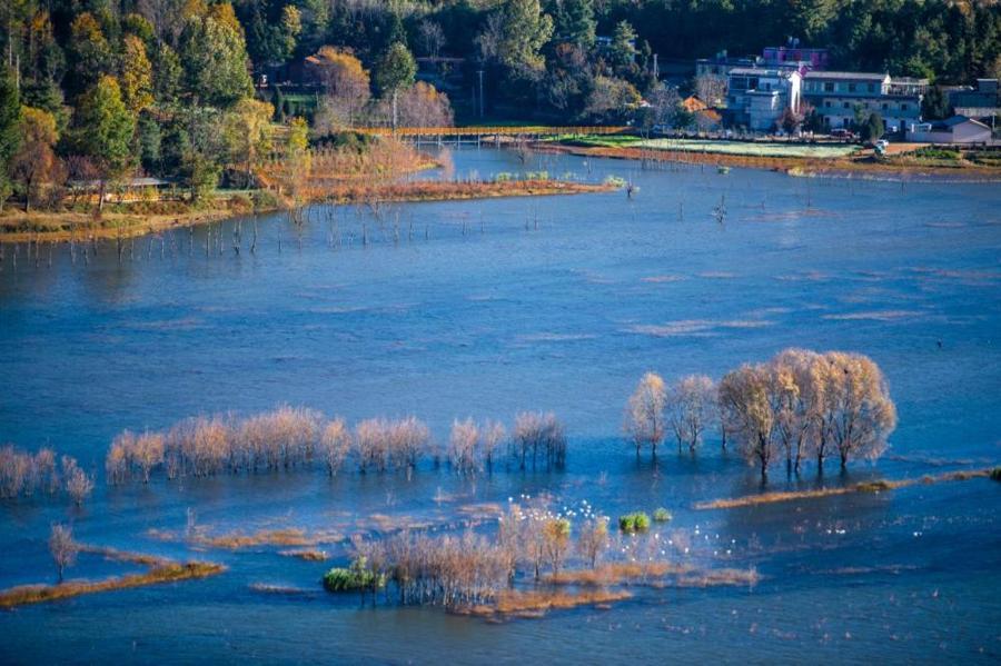人文景緻同樣迷人。曲靖西門老街和“重機印象”創意園內,青石板路泛着微光,斑駁老牆與藝術壁畫相映成趣,遊客點一杯茶或咖啡,便可鬆弛自在地放空一下午。鄉村的冬天則藏着別樣驚喜,這裏山清水秀、樹木鬱蔥,“推門看山水田園、入室住賓館酒店”的獨特旅居體驗,既保留了年代感與鄉愁味,又具備現代生活的便利度,讓遊客沉浸式感受都市人的“歸園田居”。