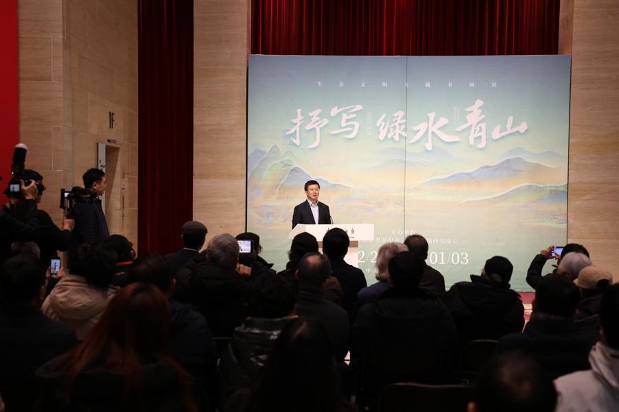 12月22日,國務院參事室中央文史研究館研究中心主辦的“抒寫綠水青山——生態文明主題書畫展”在中國美術館開幕。國務院參事室黨組書記、主任鄒曉東出席開幕式並宣佈展覽開幕,中央文史研究館副館長、中國美協名譽主席馮遠,中國美術館館長潘義奎,中央文史研究館館員、中國美協原副主席何家英出席開幕式並致辭,國務院參事室黨組成員、副主任張立平,二十餘位中央和地方文史研究館館員、國務院參事室中央文史研究館幹部代表出席了開幕式。