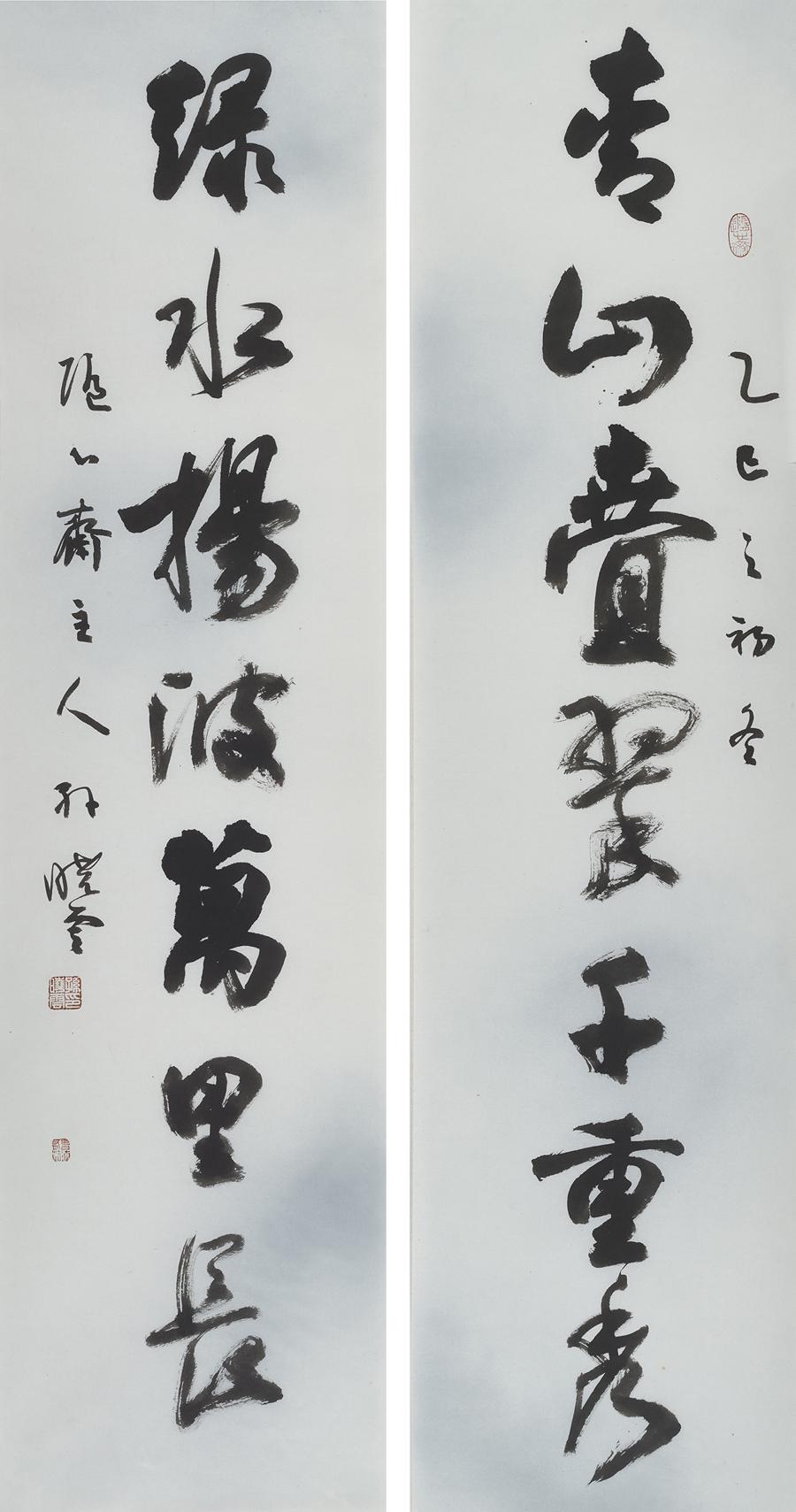 孫曉雲 青山綠水七言聯 紙本 136cm×35cm×2 2025年