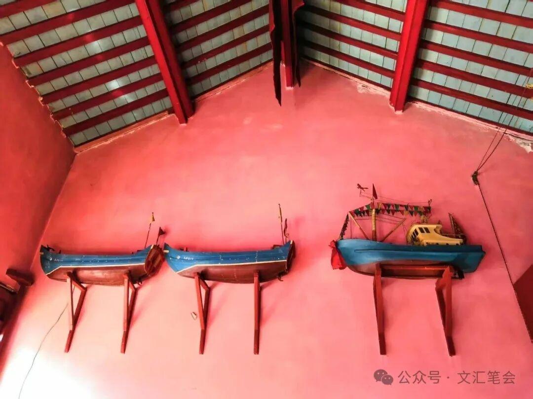 在金雞島的天后宮,有一艘娘船是三桅的大對船,主色調爲紅綠兩色,帆布上的一系列繩索系統也清晰可辨。大對船是東海的傳統船型,風帆爲動力,一般是一對船共同作業,兩船拽網合圍魚羣,漁閒時也可作爲渡船使用。這種船很少見了,不知它的主人是否還在,一艘娘船的壽命,或許比人還要長一些。有時人已經不在了,而他當初留下的娘船,還在傳達着“平安”的訴求。穿越時空的執念,最能撼動人心。