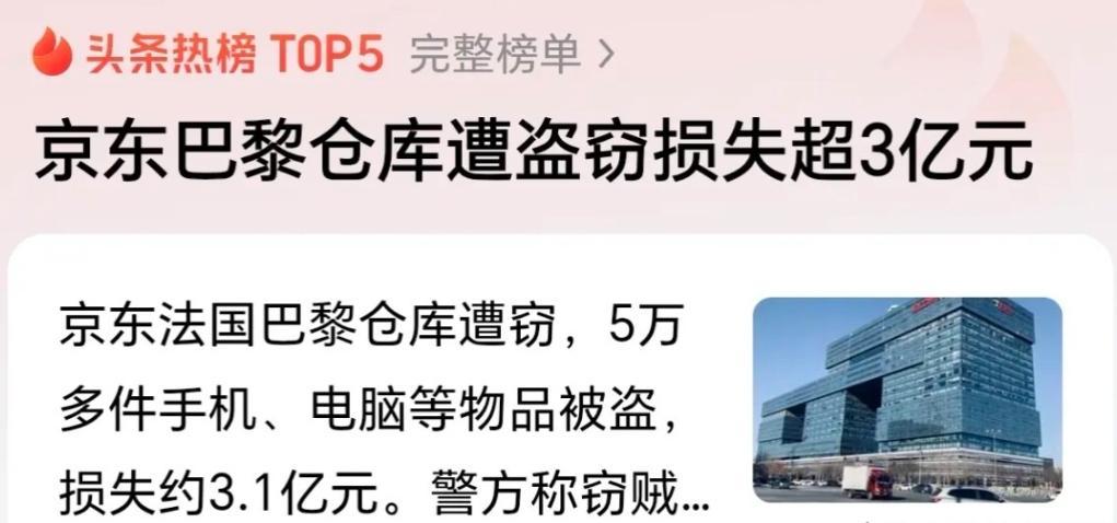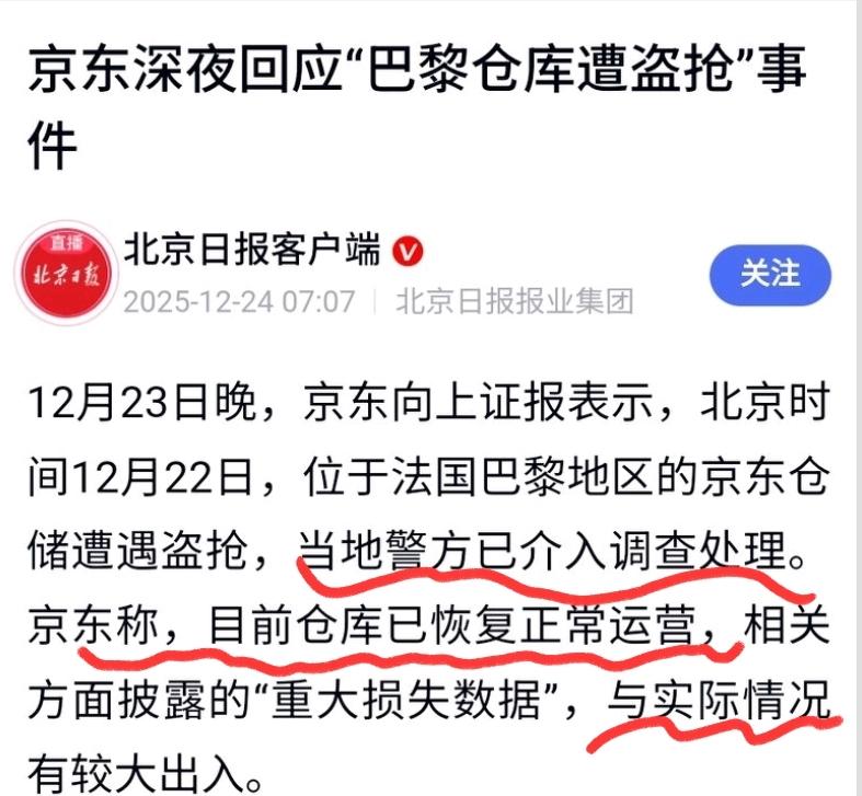 參考來源:京東巴黎倉庫遭大規模盜竊,損失超3億元人民幣——2025-12-23 19:06·看看新聞