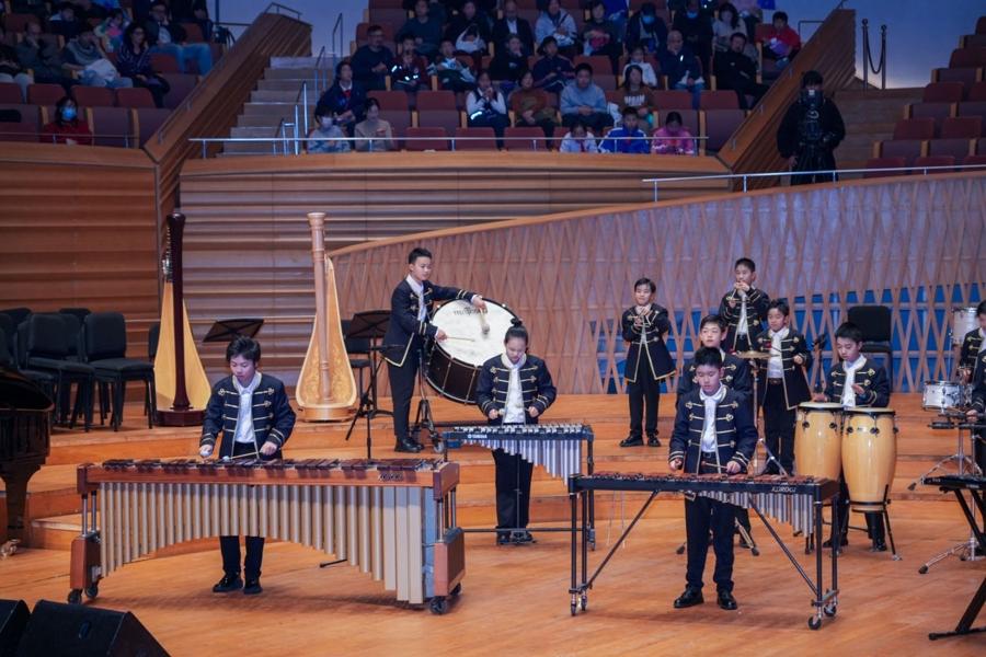 作爲徐匯青少年活動中心民樂團的排鼓手,南模初級中學初三學生許愷倫已是第三次站上迎新音樂會的舞臺。學業的忙碌並未削減他對音樂的熱愛,在他眼中,鼓槌起落間的韻律,是課餘生活裏難得的放鬆與慰藉。舞臺之上,他自信從容,紮實的功底與飽滿的狀態,盡顯少年樂手的風采。“多次舞臺表演和比賽的歷練,讓我對樂團的實力充滿信心。”許愷倫的話語裏,滿是少年意氣。