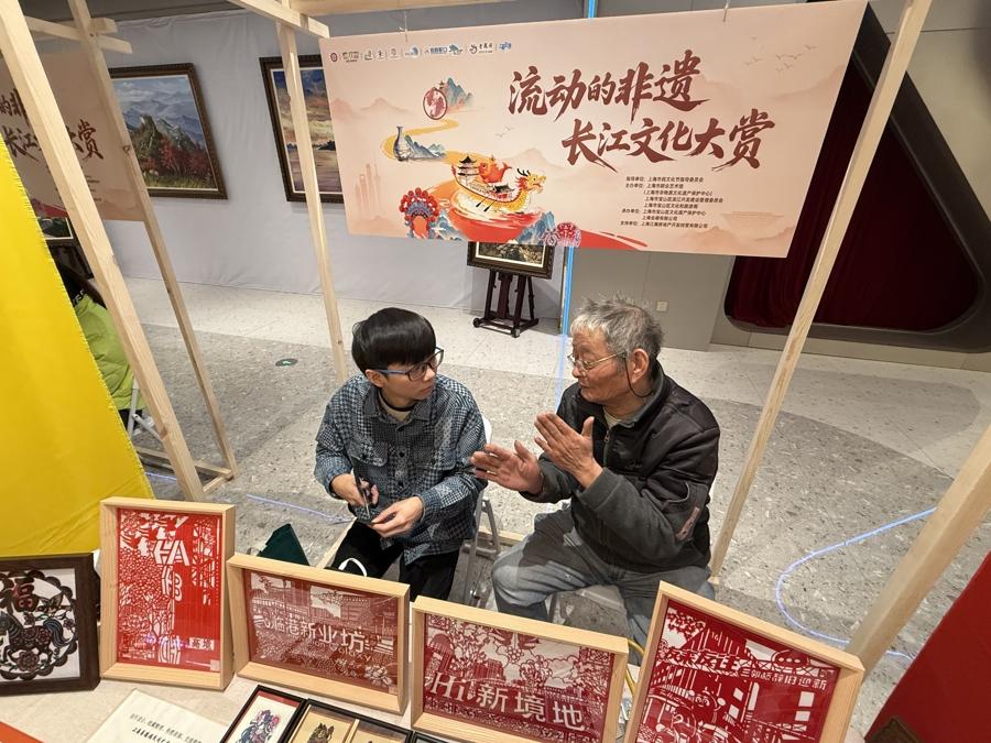 作爲“上海新年第一遊”寶山主會場活動的組成部分,“流動的非遺•長江文化大賞”12月24日率先在寶山濱江的上海·海上世界拉開序幕。在上海市非物質文化遺產保護中心的牽頭組織下,以上海爲主的長江流域非遺特色項目匯聚商圈四樓,引得市民駐足觀賞、參與互動。