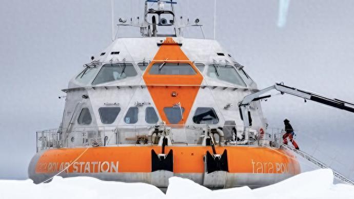作爲解決方案,塔拉海洋基金會參照南森“弗雷姆號”的設計,建造了一座漂流式科考站“塔拉極地站”。冬季,北極氣溫可低至零下50℃,造價2300萬美元的塔拉極地站專爲抵禦嚴寒而生。它長26米,設有圓頂形生活艙、弧形船體和可拆卸龍骨,能靈活升降並穩穩停靠在冰層之上。在這裏,科考人員可擁有相對舒適的生活環境,站內配備健身房、桑拿房和設備齊全的實驗室,甚至設有類似海上鑽井船那樣的“月池”——也就是位於船底的一個直通大海的開口。通過這個通道,科考人員無需鑿冰,就能直接進行海中作業。