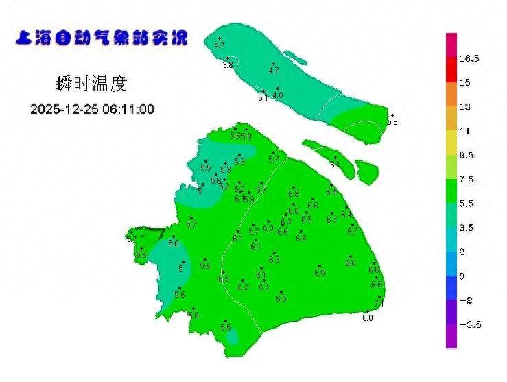 今天申城受補充冷空氣影響,多雲到晴爲主,氣溫繼續下降,風力較昨日進一步增大,偏北風4~5級陣風6級,沿江沿海地區5級陣風6~7級。預計白天最高氣溫在9℃附近。相對溼度90%~45%。風寒效應明顯,體感較冷。