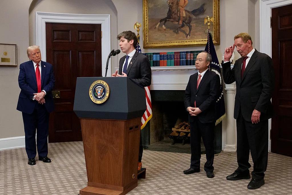 而爲了跟特朗普搭上線,奧特曼找到了甲骨文的創始人埃裏森幫忙。埃裏森認識特朗普多年,還將擴大甲骨文與OpenAI的業務往來。捐贈了100萬美元后,奧特曼獲得了特朗普就職典禮的入場券,次日,他就和埃裏森、軟銀的孫正義一起,出現在總統辦公室,宣佈了星際之門計劃。