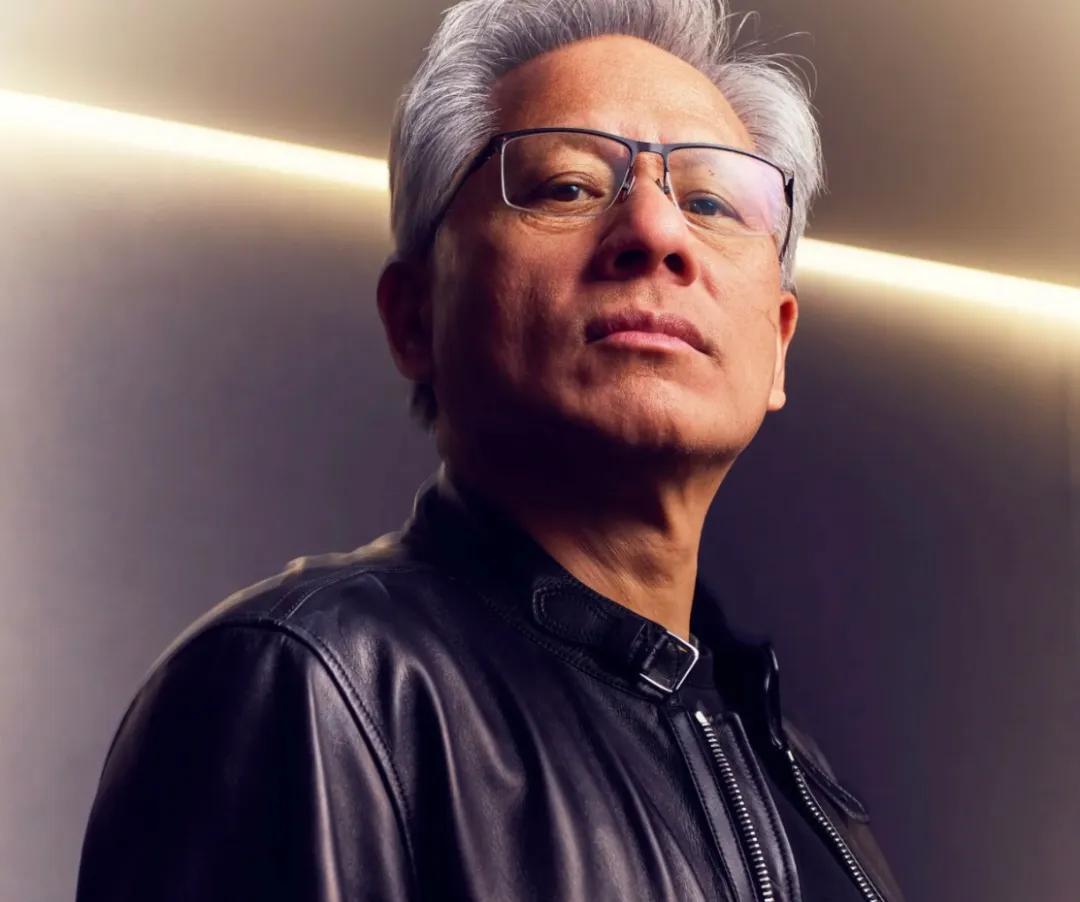 英偉達的黃仁勳自然入選。在雜誌的內文裏,攝影師拍了一張“英雄式”的構圖照片,黃仁勳神情嚴肅地俯瞰着世界,頭後有還有一道亮光,營造出不可撼動的神聖。