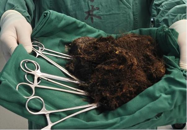 今年7月,15歲少女妮妮(化名)去醫院就診。1.6米的她,只有35公斤重,已半年沒有來月經。醫生髮現,妮妮屬於重度貧血狀態,經胃腸道超聲檢查,結果提示可能是“胃石症”。之後,經手術,醫生從她胃中取出4斤頭髮碎片。
