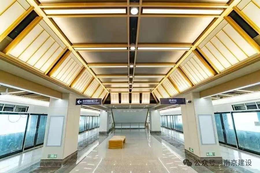車站裝修以“山水城林”爲核心理念,結合南京自然地理特徵與歷史文脈開展設計。標準站通過空間線條優化營造地域特色氛圍,門套裝飾提取紫峯大廈、明故宮、棲霞山等城市地標元素,實現功能實用性與地域辨識度的統一。