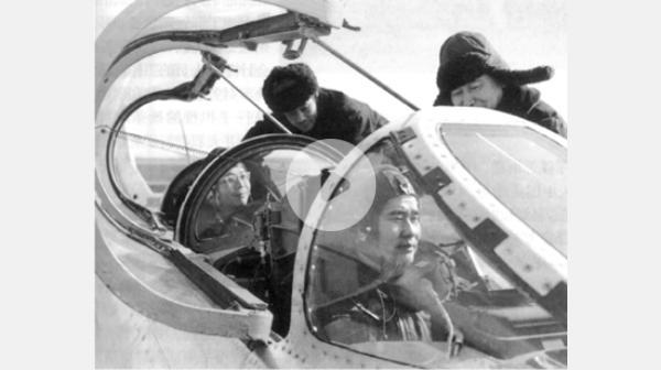 顧誦芬在後座乘殲教-6升空,前排飛行員爲鹿鳴東