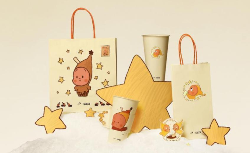 伴隨產品上新,喜茶同時推出基於全新星星人形象設計的,包括飲品杯、紙袋、杯套在內的全線聯名限定包材,以及靈感小卡、貼紙、徽章、茶碗等限定周邊,滿足IP粉絲的各式收藏需求。