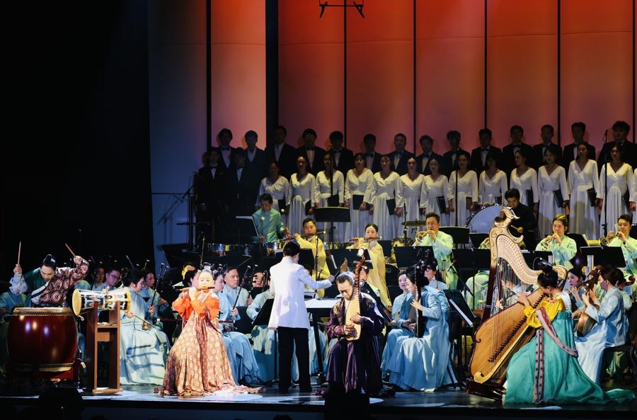 作曲家孔志軒分享了本次演出的打磨細節,此次登臺他專門優化了作品第五與第六篇章。“第五篇章《風骨錚鳴》擴充原有結構,層層遞進間讓風骨內涵更立體豐滿;第六篇章《星河共潮》則精簡結構,凝練打磨各部分音樂形象,核心是凸顯中華民族歷經磨難仍屹立不倒的民族氣節。”