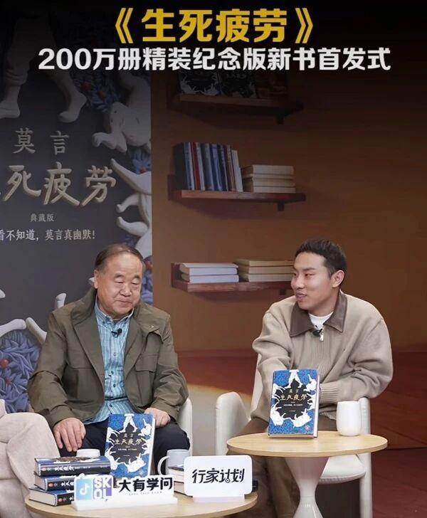 ▷莫言、徐志勝“跨次元”對話。近日,《生死疲勞》精裝典藏版首發式舉辦,作家莫言攜手脫口秀演員徐志勝開啓了一場線上文學對談。作爲山東老鄉,兩人用方言嘮嗑、玩網絡流行語。當聊到幽默與痛苦的關係時,莫言直言,阿Q精神並非貶義詞,“精神勝利法是中國人對抗生活的智慧”。徐志勝則補充道,“負面情緒的出現有時是爲了保護自己”。莫言還自曝年輕時曾是“話癆”。他笑稱,作家羣聊堪比脫口秀現場,“大家互相調侃,和相聲演員上臺沒兩樣”。