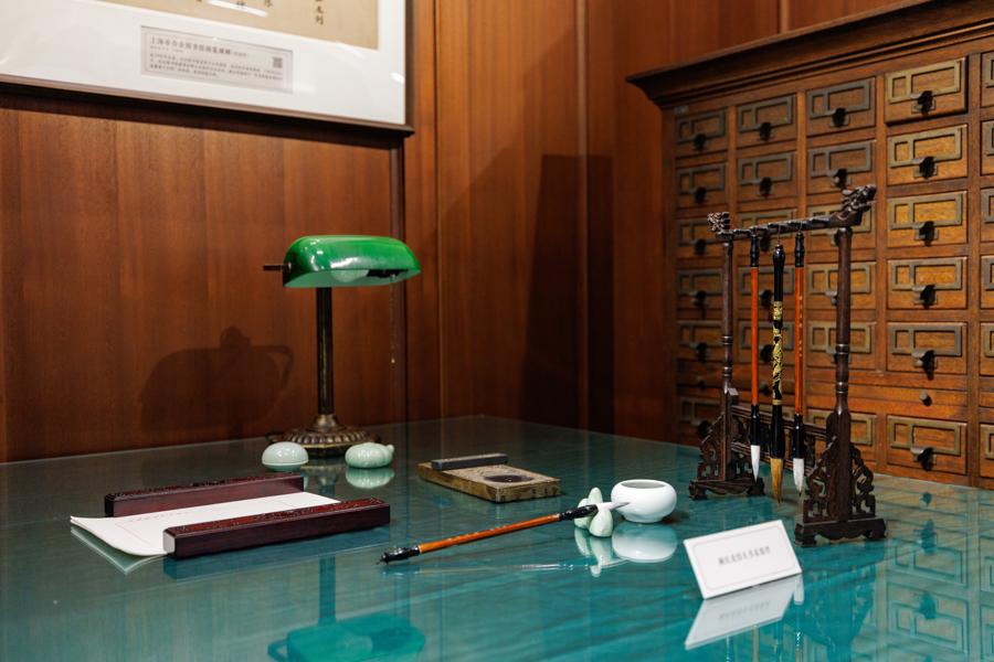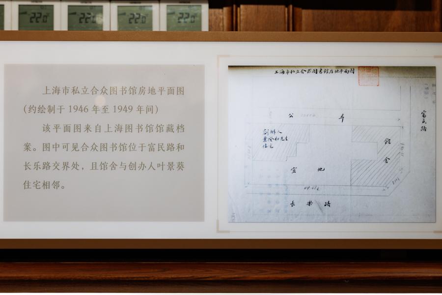1941年2月,位於長樂路746號的合衆圖書館館舍動工,由華蓋建築師事務所陳植主持設計、久大營造廠承造。展覽中,等比例縮小的設計圖紙和原建所用磚瓦,無聲訴說着它何以成爲抗戰時期“中國設計、中國建造”的代表性建築之一。