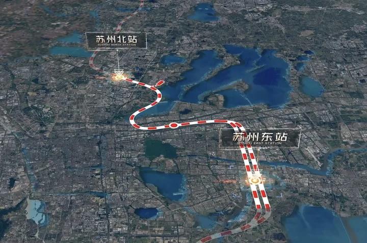 本次開工的如通蘇湖城際鐵路蘇州北至蘇州東段全長34.92公里,設蘇州北、蘇州園區和蘇州東3座城際鐵路站,新建城際動車所1座,是長三角地區城際鐵路網的重要組成部分,途經相城、工業園區、吳中三區,沿線跨越京滬高鐵、京滬鐵路、滬寧城際、陽澄湖及婁江快速路,設計運營時速160公里。