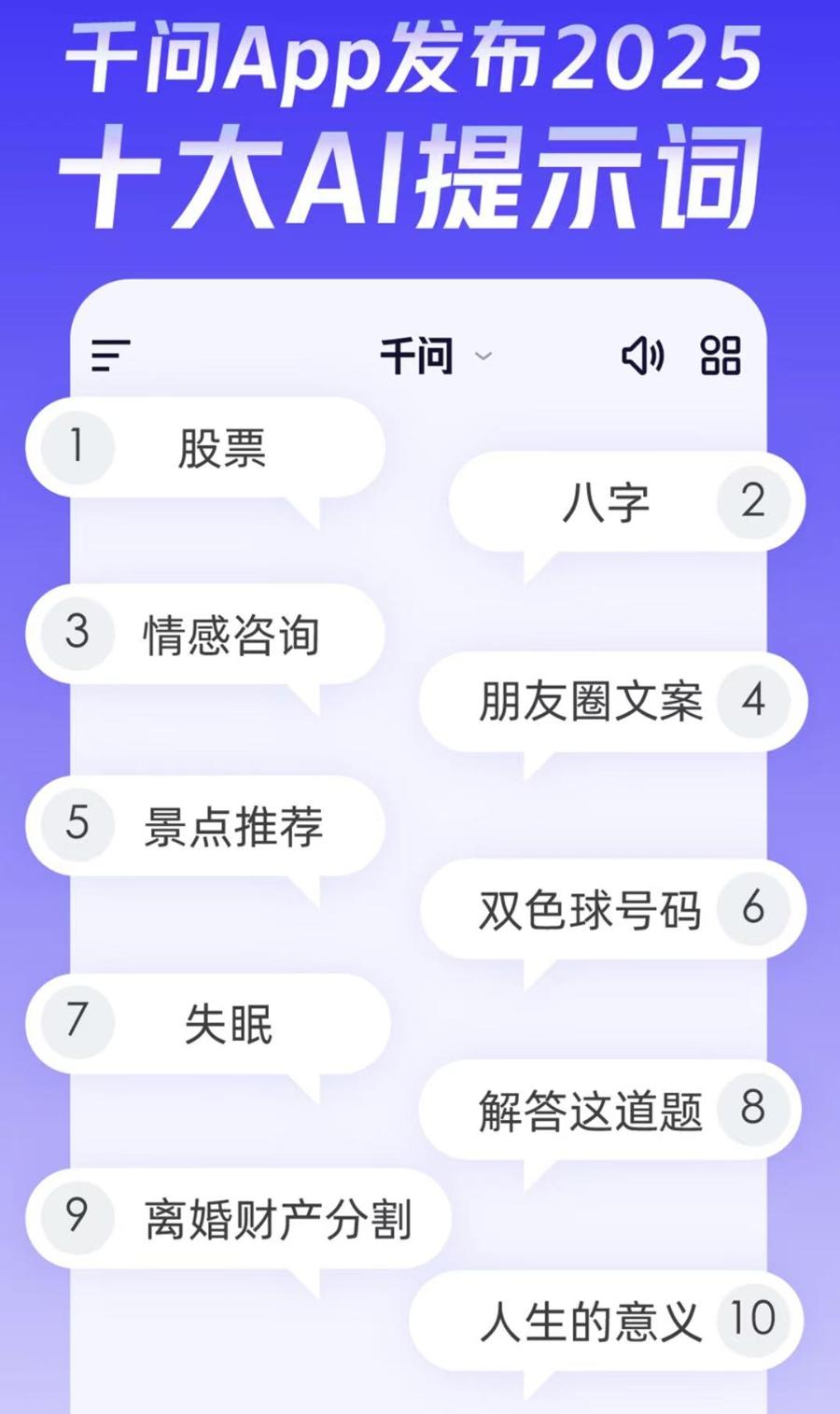 阿里千問近日發佈“2025十大AI提示詞”榜單