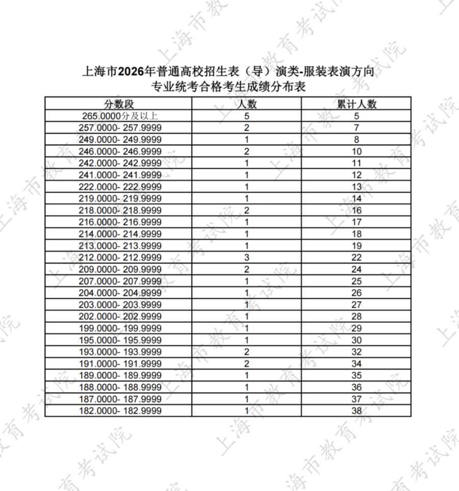滬2026年高招藝術類專業統考合格線確定(附考生成績分佈表)