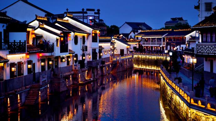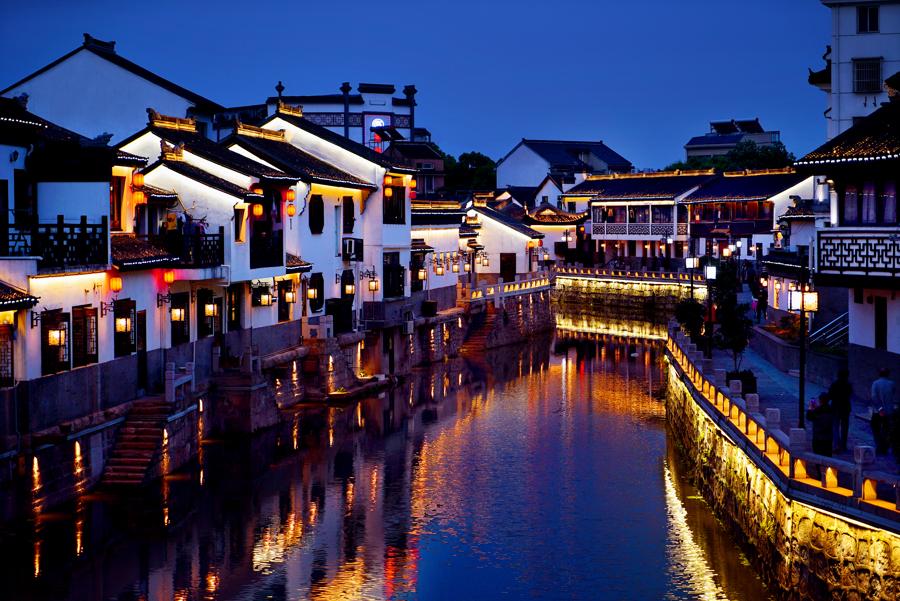 圖爲朱家角鎮夜景。/趙立榮攝