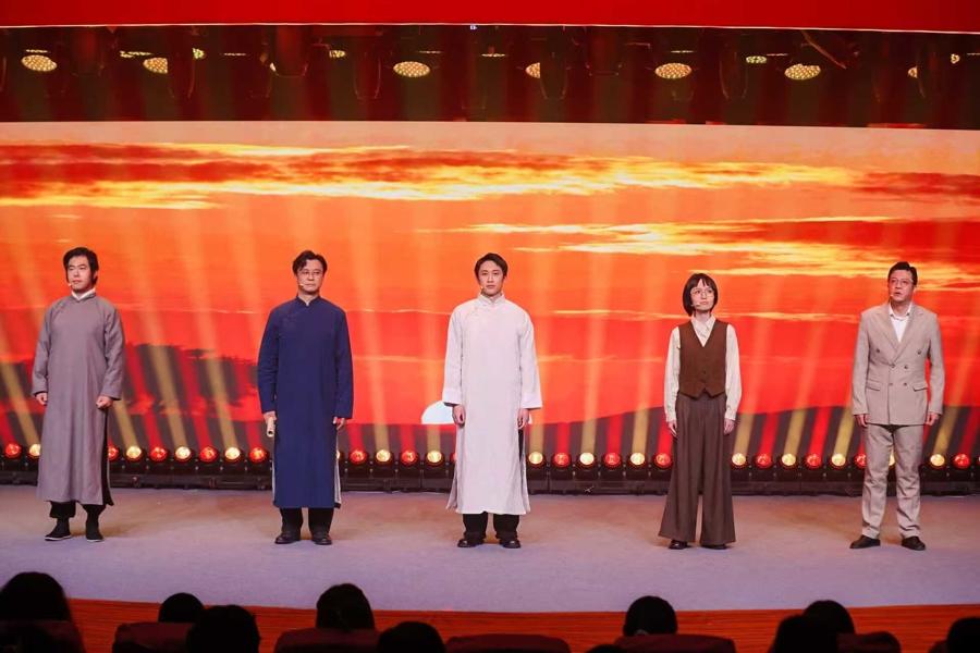 吸引多名專業人士參與的曲陽社區朗誦藝術團,演繹原創情景講述《筆墨戰場・等你回來》。