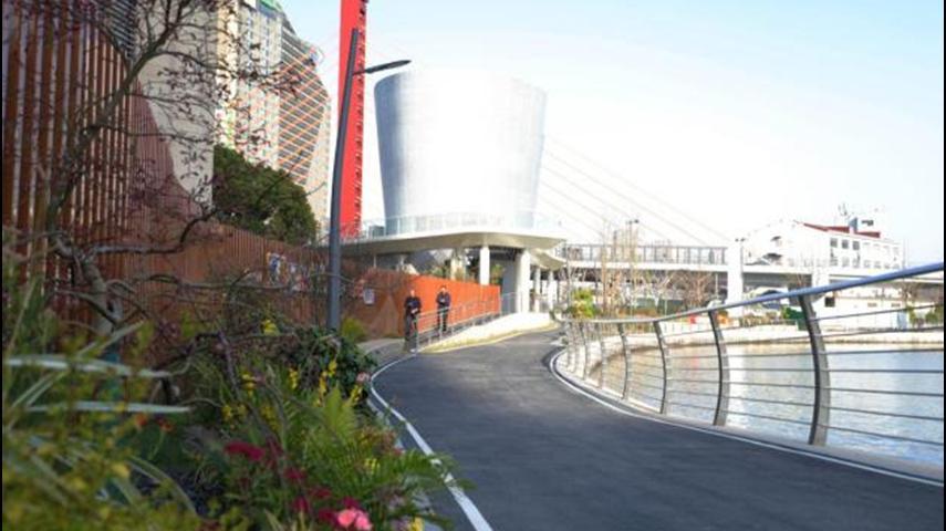 同樣,由普陀、靜安兩區共同實施的跨蘇州河的百合橋,有效解決了長壽路橋與昌化路橋之間間距較大,兩區居民“近在咫尺卻要繞道而行”的困難。作爲蘇州河上最年輕的橋樑,百合橋的設計注重與濱水空間聯動,它不僅爲市民搭建起又一便捷、安全、舒適的慢行通道,還打造了一個休閒、娛樂、舒適、生態的濱水公共空間。
