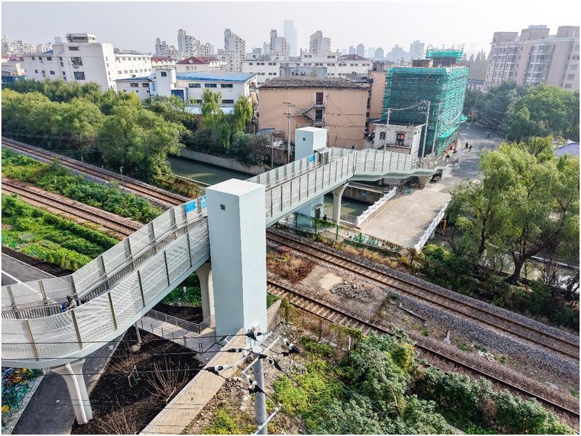 2024年,在虹口區建管委、區人大、區市政水務中心及鐵路部門的多方協調配合下,經過3個月緊鑼密鼓地施工,三門路跨鐵路慢行橋建成通行。如今,這一地區的市民可通過此橋快速便捷地前往鐵路西側區域,有效破解地區出行痛點。市民李阿姨說:“以前到第四人民醫院看病,直線距離只有1公里,卻要繞行半小時以上,現在15分鐘左右就到了。”