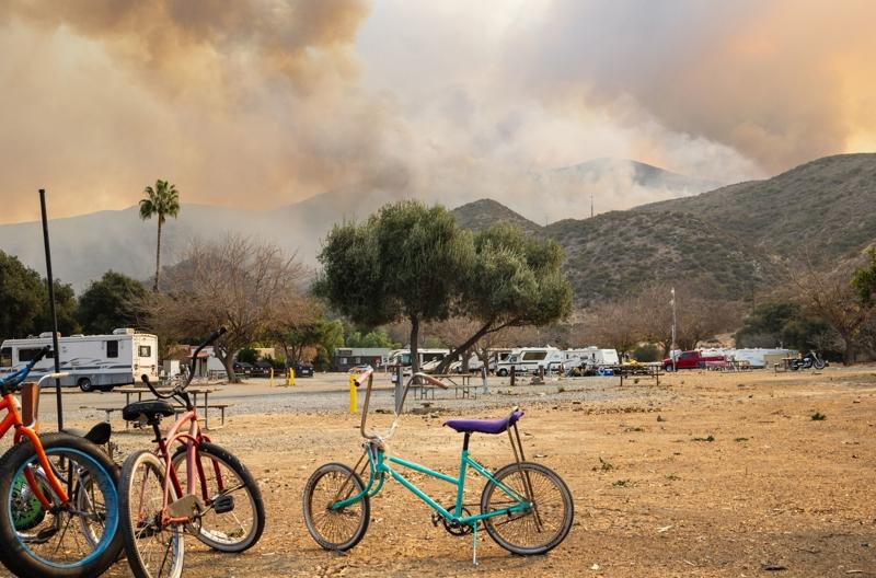 1月24日,在美國加利福尼亞州南部聖迭戈縣,火災現場冒出濃煙。新華社發