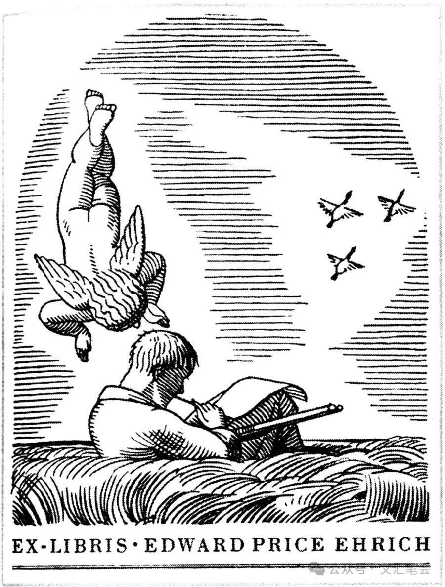 藏書票起源於歐洲,是用來標明圖書所有者的,國際通行在票上寫有“EX—LIBRIS”(拉丁文),意思是“屬於私人藏書”。開初以貴族的族徽爲主要內容,後來逐步被藝術和趣味取代,大多是微型版畫,實用性反成其次。由於面積小,繪製者鬥智鬥巧,或形簡意遠,或精雕細刻,其中許多與書有關,如少女坐在高高的書堆上讀書,雄雞踏在書上高鳴等。其他各種題材都有——古希臘故事、但丁肖像、美女和蛇、大樹和房屋、鳥和動物、遠航的船等,僅表現美人魚的藏書票就有幾十上百種(我所見侷促,也許還要多很多)。也有圖案性的,比如葉靈鳳的鳳凰票,明顯借鑑了莫里斯書籍設計的繁複圖案,主體卻是中國傳說中的百鳥之王鳳凰。範用先生自制的藏書票,鋼筆畫了一隻裝滿書的書架,有一層少了幾本書,邊上寫了幾行字:“願此書亦如倦鳥歸巢,鶴鏞自制”——是提醒借書人早點把書還給主人吶!鶴鏞,範用先生原名。