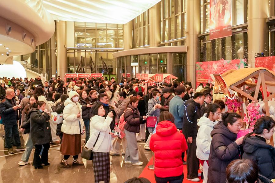 藝術體驗早已延伸至舞臺之外:《垂虹別意·唐寅》演出前,劇場大廳化身爲“桃花宴”主題空間,人造雪花與非遺市集相映成趣;《牡丹亭》主創則走進同濟大學,與年輕學子促膝長談。從市集的煙火氣到校園的思想碰撞,從舌尖的體驗到心靈的共鳴,藝術成爲可以觸摸、品味、對話的鮮活存在,傳統文化亦悄然融入當代生活的脈絡。