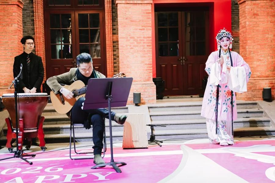 在今潮8弄舉辦多次的“弄堂屋頂音樂會”也再度升級,由兩支專業團隊帶來演出。曾幾次主創“弄堂屋頂音樂會”的鋼琴家李瑋捷此次與團隊帶來了《愛,不止是夢》樂章,包括《梨花頌》《驚夢隨想》《阿拉伯隨想曲》等中外名曲,讓崑曲的水磨腔、吉他的弗拉明戈、二胡的絲絃匯出中西合璧的聯奏,而特意選擇的《賽馬》更奏出馬年新年的氛圍。李瑋捷介紹,除了弄堂屋頂,演出還在一樓廣場、商場連廊等多點位展開,“讓更多人循着樂聲來逛商場”。