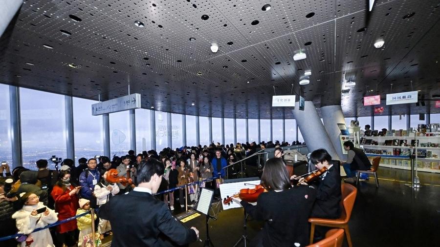2026年1月1日清晨,伴隨着數百名市民與遊客的歡呼聲與上海中學歌劇社團清澈的歌聲,上海中心一年一度“第一縷晨曦”活動在632米高的118層觀光廳舉行,用一場“上海之巔”的晨間儀式,開啓一段向上的新旅程。