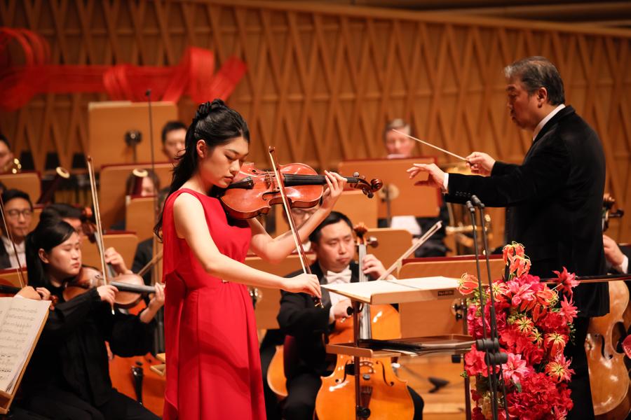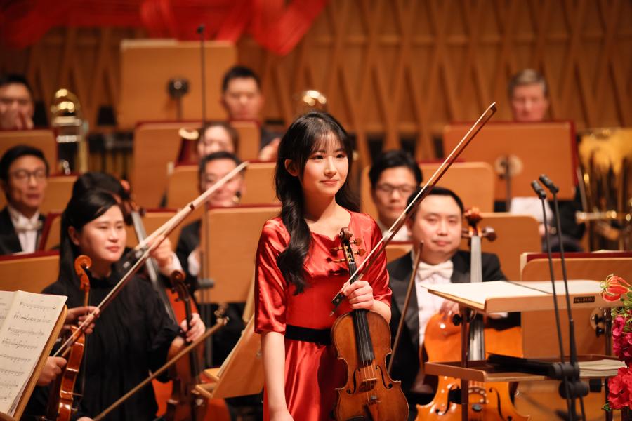 出生於2007年的小提琴家蔡珂宜在10歲、11歲時分別斬獲安德烈亞·波斯塔奇尼國際小提琴比賽A組和梅紐因國際青少年小提琴比賽少年組的冠軍,2025年7月發行的莫扎特協奏曲專輯登頂蘋果古典音樂全球榜單,過硬的技巧、成熟的颱風與稚嫩的外表形成了強烈的反差,被圈粉的樂迷們親切地稱呼她爲“蔡教授”。這次是蔡珂宜第一次來到上海,作爲第一次與餘隆總監合作的“新人”,她起初格外緊張:“但餘老師特別熱情,也很supportive(充滿鼓勵的),慢慢就放鬆下來了”。身爲摩羯座的完美主義者,她笑稱壓力多來自自己,“拉琴、功課都想做到最好”。這次上海新年音樂會是蔡珂宜與上海交響樂團的首度合作,曲目《卡門幻想曲》源自配樂大師韋克斯曼爲電影《狂想曲》所作的音樂,以比才經典《卡門》爲藍本,後來應小提琴巨匠海菲茨請求,作曲家將此廣受好評的片段擴展爲了完整的音樂會作品。