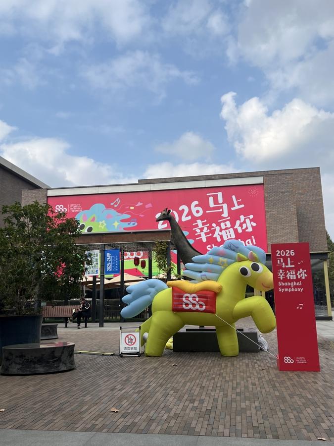 音樂會開始前,上交音樂廳內人頭攢動,進門的紅毯一路延伸至大堂“馬上幸福你”新年裝置,一旁剛剛上新的文創玩偶名叫“馬樂迪”,戴着肖斯塔科維奇同款黑框眼鏡,還有許多樂迷圍着票房後的“2026幸福特刊”打印機,製作一張印有自己照片的專屬海報。上海新年音樂會的熱烈氣氛也不止於現場,演出通過多個線上平臺同步直播。