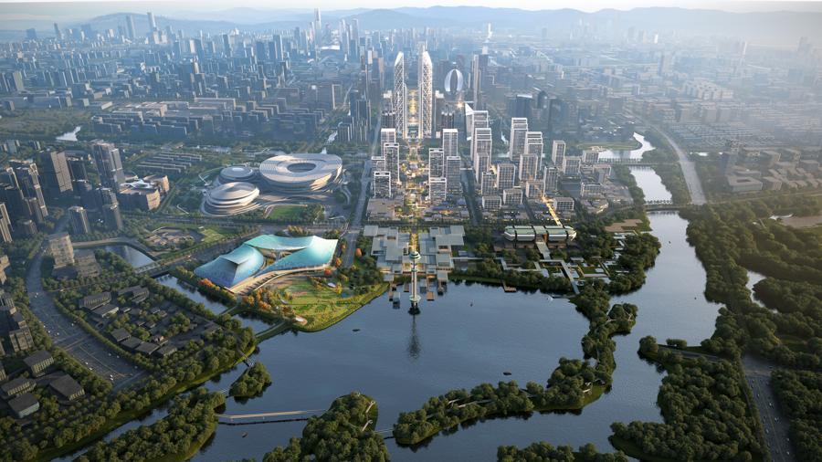 一邊是良渚古城遺址公園、杭州國家版本館、“中國曆代繪畫大系”典藏館三大文化地標齊聚良渚文化大走廊,另一邊,全省唯一的6萬座專業足球場、全省唯一的國際標準音樂廳在中軸線上建設正酣。杭州城建史上的首條城市中軸線,正爲餘杭區率先呈現城市新中心生動場景提供硬核資本。