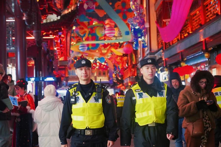 針對跨年夜人流密度高、風險點位多的特點,黃浦警方以“總量控制、視情管控”爲原則,開啓“互聯網+大客流”的安保模式,深化多警種聯勤聯動、一體化作戰機制,強化指揮調度效率,確保響應迅速、處置有力。在外灘、南京路步行街、豫園、新天地等人員易聚集區域,警方嚴密落實圈層防護措施,加強顯性用警和巡邏頻次,提升見警率、管事率,切實守護羣衆安全。