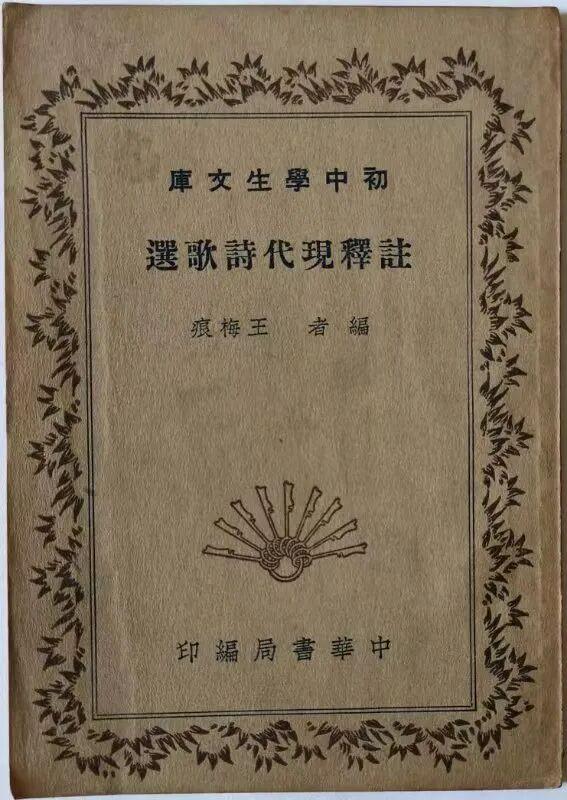 本文暫不討論王梅痕的詩,而是介紹她編選的這本新詩選。此書最初以《中華現代文學選(第二冊 詩歌)》的書名,於1935年3月由上海中華書局初版。三個月後,又以《註釋現代詩歌選》的書名,列爲“初中學生文庫”之一,仍由中華書局初版。本文介紹的是第二個版本。