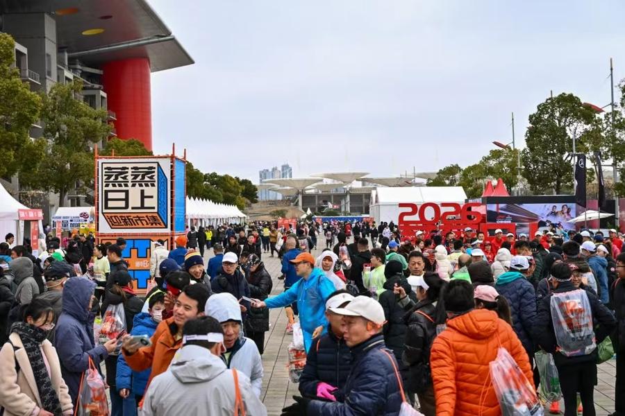 在上海國際賽車場,6872名跑友衝過上賽場的龍門架後沿順時針的“上”字型賽道,跑出一馬當先的“第一步”,用決心與行動揭開奮進的新年篇章。1月1日,2026年上海嘉定半程馬拉松暨蒸蒸日上迎新跑如約啓幕。