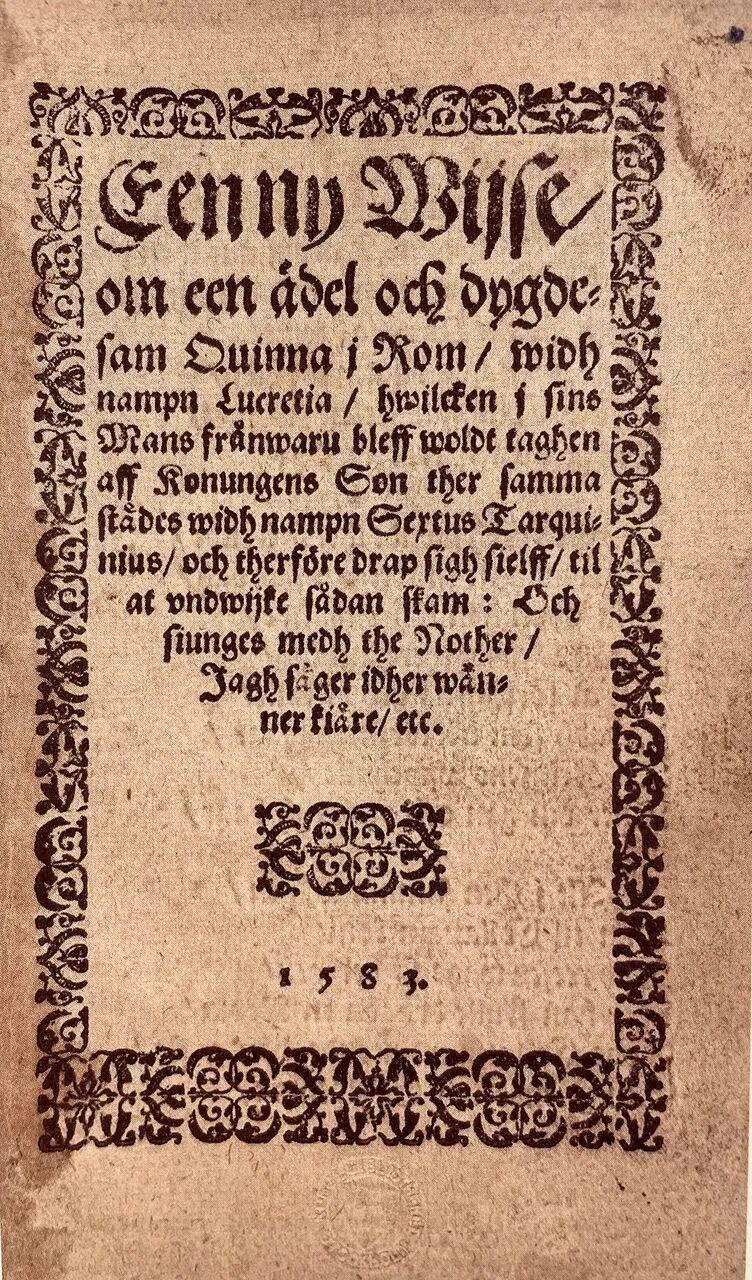 在瑞典語境中,“先令印刷品”這一名稱是19世紀中期開始使用的,用來指16世紀末開始出現的平價印刷物。這種印刷物起初多爲單張兩面,提供歌謠的歌詞,也包含新聞、讚美詩、對國王的頌揚以及離奇案件的敘述。而它刊載的大量歌謠,包括口頭流傳的,也有作家的詩歌及針對時事的新創作。瑞典先令印刷品可追溯到1583年(下圖),延續到約1920年。
