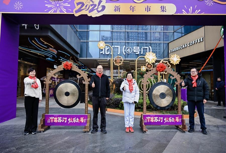 元旦首日,“半馬蘇河 快樂加‘馬’”普陀區2026新年市集和迎新文藝演出在上海長風大悅城啓動。