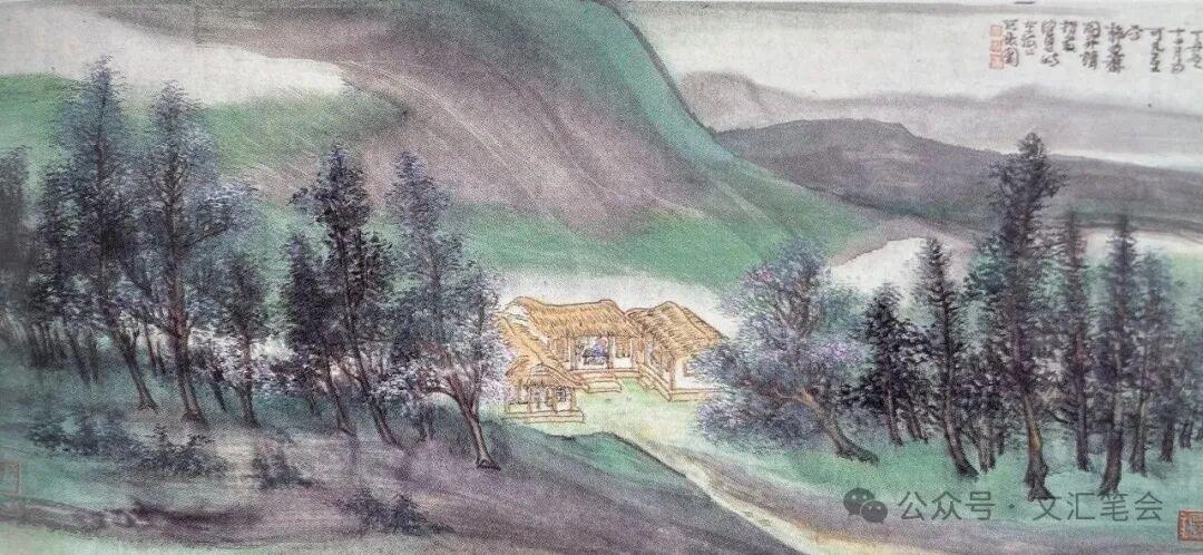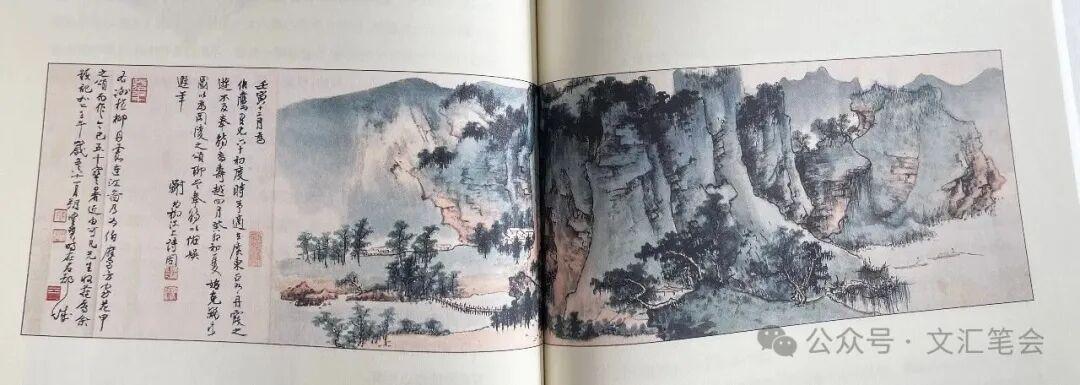 此畫爲謝老上世紀六十年代爲書法家潘伯鷹先生六十初度而作。那段時間,謝老出行廣東,所作山水均有王晉卿筆意。謝老與王晉卿有“不解之緣”。他早年從坊間爲博物館購得王晉卿《煙江疊嶂圖》,但博物界同行均認爲是贗品。不得已,謝老只得自己花一千八百元買下,卻又被人指摘以畫牟利,並將此畫沒收。謝老有口難辯,鬱鬱寡歡。直至上世紀八十年代,冤案才得以洗清。但謝老豁達大度,不計前嫌,毅然將其捐獻國家,了卻心中願望。從這個意義上來說,謝老與王晉卿有着跨越千年的心靈溝通與交融。而此幅《丹霞連江圖》基本脫胎於王詵《漁村小雪圖》和《煙江疊嶂圖》並摻入巨然、董源及郭熙等人元素後自成一格。展開畫卷,只見峯巒綿亙,坡岸環抱,于堅凝雄渾、方峻硬朗中透着一股柔婉之氣,江山遼闊、煙波浩渺,一片空靈氣象。總之,此畫真正達到“刻畫嚴謹,筆墨精煉,氣象渾成,韻致深遠”的意境。目睹此畫,耳邊就響起先生的話語:“筆底的東西,無法騙人。你心裏有盛唐宋元,筆下便是山河;心裏是殘山剩水,筆下也終究蕭索。”謝稚柳先生自己,就是一個心裏揣着上下五千年的藝術大師。