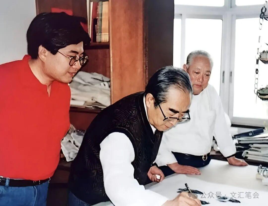 若說髪老是逸筆草草的天籟,那謝稚柳先生便是法度莊嚴的廟堂之音。他走近時,周遭空氣似乎都肅穆了幾分,那是一種唐宋深處的,華貴而清冷的靜謐。謝老有民國老派知識分子風範,哪怕布衣蔬食,那通體的氣派,也是從《宣和畫譜》裏走出來的。他的畫,初看是驚人的工緻,重巒疊嶂,碧樹紅花,無一筆不精,無一色不絕,那是唐宋的韻致,藉着他的手,在宣紙上覆活。然而,細細端詳,你又會從那片富麗堂皇中,品出一縷極幽微的孤寂來。那是一種文明的高貴的寂寞。好像一個過往時代即將消散,總是將自己的全部生命力匯成最濃烈的一抹霞彩。我記得有一次在《詩與畫》雅集時,聽他緩緩談及“落墨法”,音調不高,卻像古琴的泛音,直往人的心裏去。儘管與謝老在雅集筆會有過數次接觸,但未及傾聽其教誨,直至爲一幅山水畫的鑑賞,纔有幸與他老人家有近距離接觸。