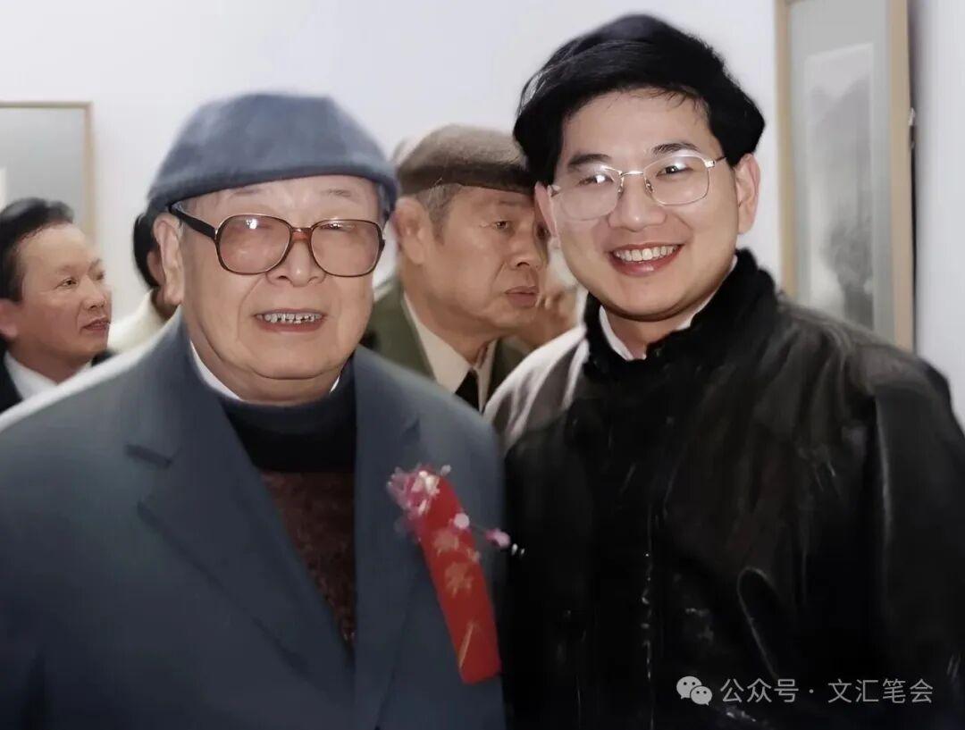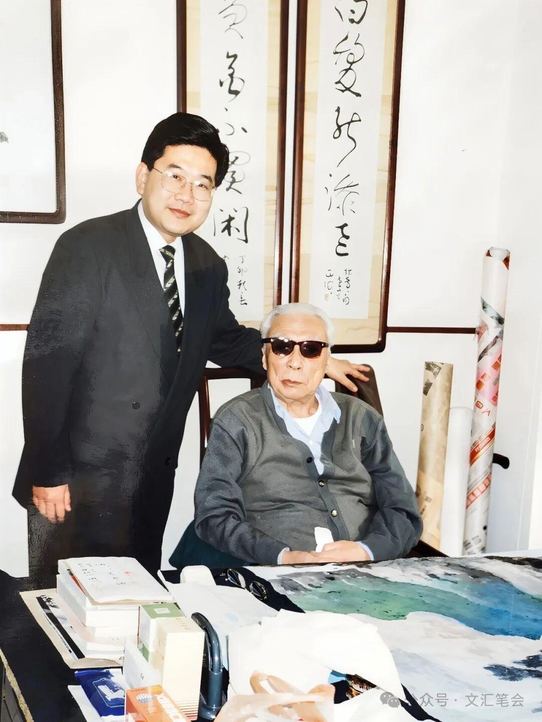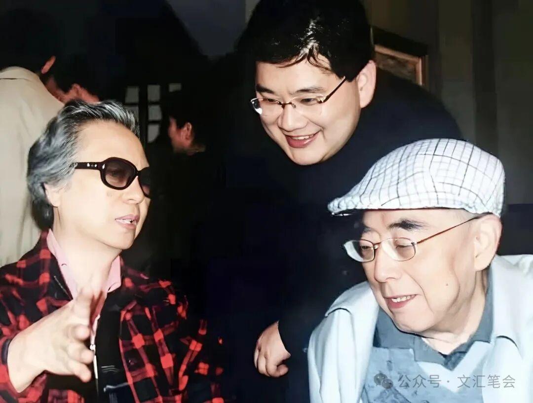 與陳佩秋(左)程十髪(右)二老合影於2003年