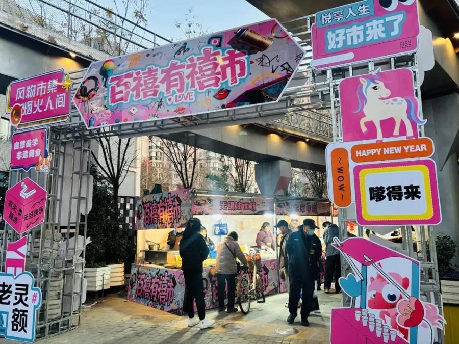 曹楊百禧公園舉行“百禧有禧市·風物市集”,彙集近50個精心佈置的攤位,爲周邊居民打造了一處集年貨採購、休閒體驗於一體的社區迎新空間。市集主打“風物”概念,彙集了無錫、揚州等沿滬寧城市的特色農產品與傳統美食,也包含年糕等本地年節食品,旨在打造全齡化、充滿煙火氣的社區空間。元旦當日,市集增設了特別互動環節。