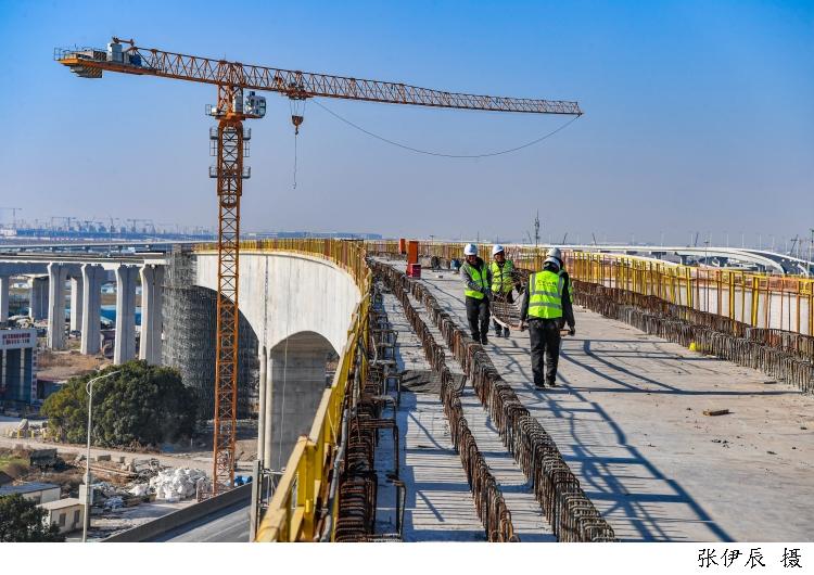 昨天,市域鐵路南匯支線10標施工現場一片火熱。工人們穿梭於不同作業面,綁紮鋼筋、電焊施工、搭設支架、吊裝物資……各項工作有條不紊。作爲連接上海東站與下鹽路站的重要高架區間,10標段線路由西向東敷設,左右線分別上跨兩港大道後向南轉入下鹽路站。元旦假期,滬上很多交通工程建設項目持續推進,以分秒記、以日夜記,爲的是城市通行更便利、發展要素更暢達,多處骨幹網絡“結構成型”,這些線路不僅串聯起車站,更緊密連接產業園區、交通樞紐、居住社區與生態節點,將爲城市未來五到十年的空間格局和能級提升打下堅實基礎。